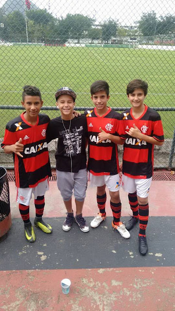 Com jogadores do time Sub 13 do Flamengo