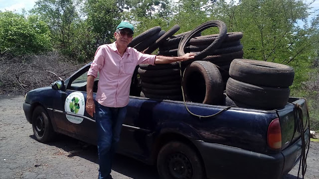 O escritor, historiador, radialista, ambientalista Elias Barros Medeiros Junior, um dos nomes ilustres da sociedade de Esperantina, cidade distante 170 quilômetros ao norte de Teresina, saiu pela zona urbana da sua cidade colhendo pneus de veículos deixados de forma irresponsável nas ruas e terrenos baldios, causando graves danos a Natureza.