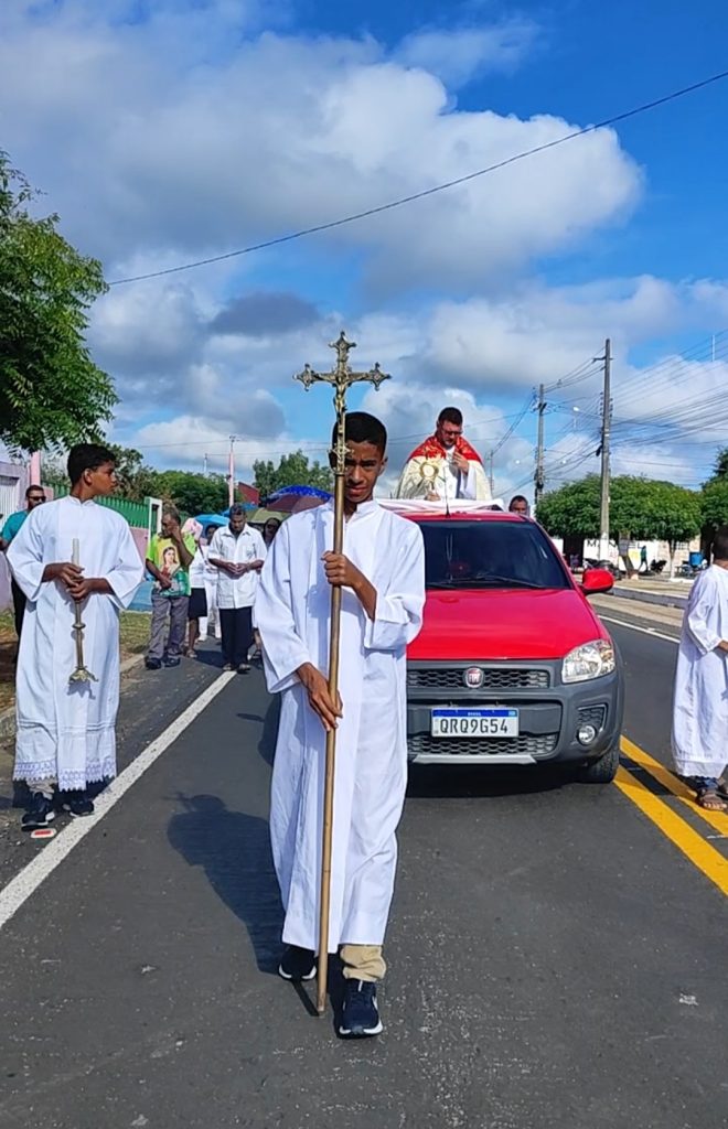 Fiéis da comunidade católica de Olho D’Água do Piauí e demais convidados reuniram-se em procissão nesta quinta-feira (30), para juntos celebrarem o dia de Corpus Christi. Logo após a procissão teve Santa missa celebrada pelo Pe. Almir.